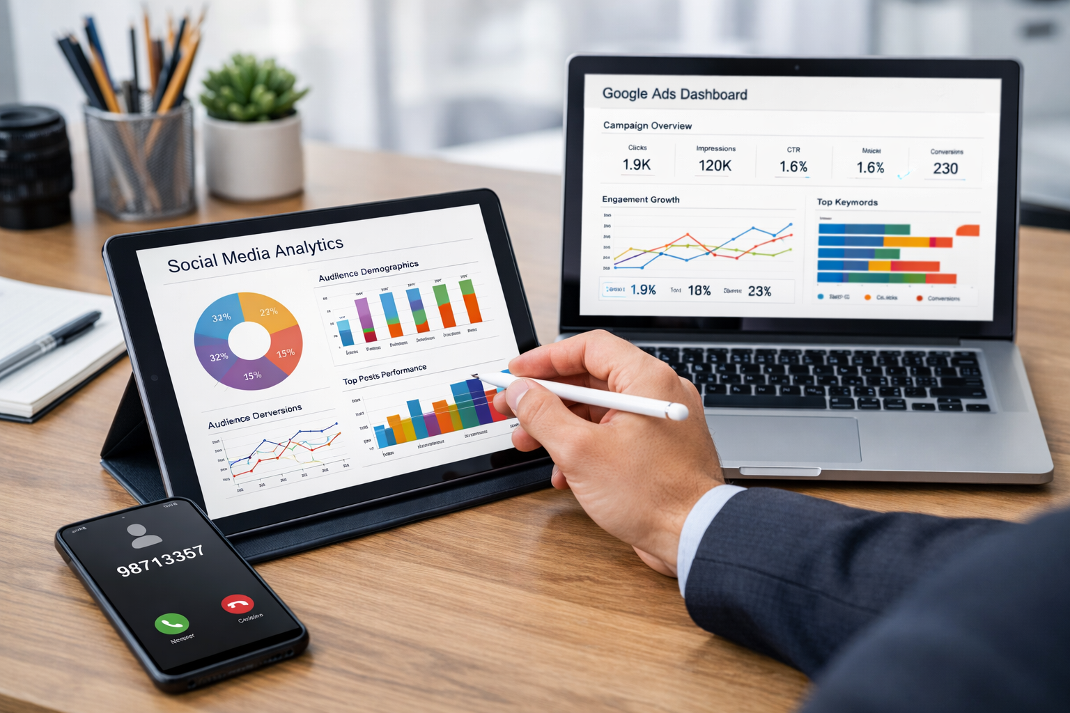 التسويق الإلكتروني ليس مجرد نشر صور على إنستجرام، بل هو علم يعتمد على البيانات والتحليل. في النخبة الخليجية، يبدأ فريق التسويق الرقمي بدراسة “رحلة العميل” (Customer Journey). نقوم بتحليل الكلمات البحثية التي يستخدمها الكويتيون للوصول إلى خدماتك، ثم نصمم حملات Google Ads تستهدف هذه الكلمات بدقة لضمان ظهورك في النتيجة الأولى.