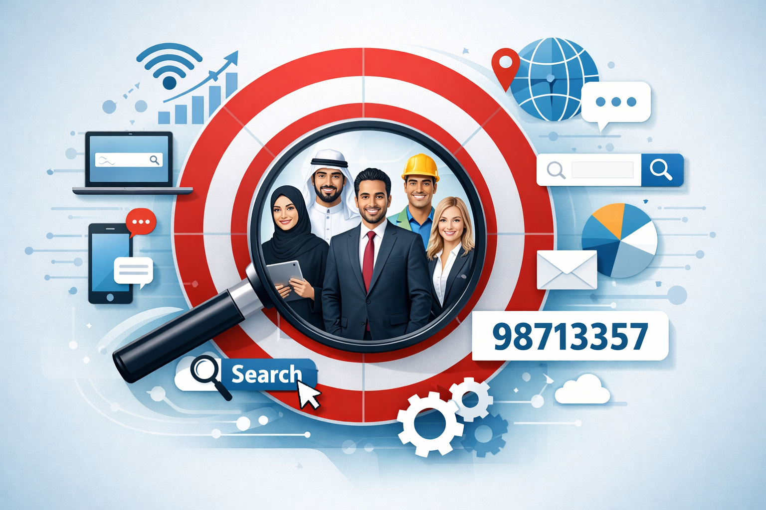 نحن نضمن وصول رسالتك الإعلانية إلى الجمهور المناسب في الوقت المناسب، لزيادة معدلات التحويل. للتخطيط لحملتك: 98713357